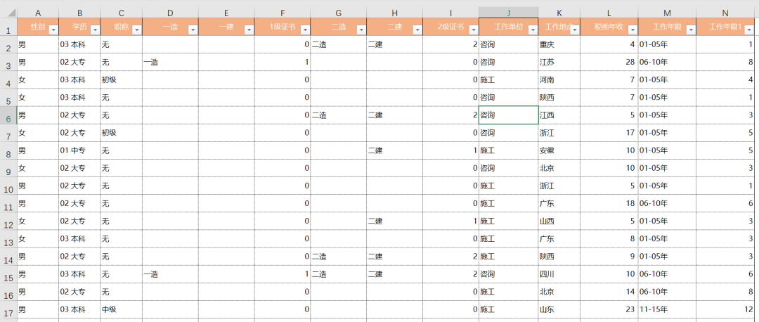 其實不論是造價表格還是此列數據調查樣表,只要是數據,就一定要結構化,如此才能更好地分析。這個調查表的數據化設計做的并不是很好,我花了不少時間清洗整理成如下效果。