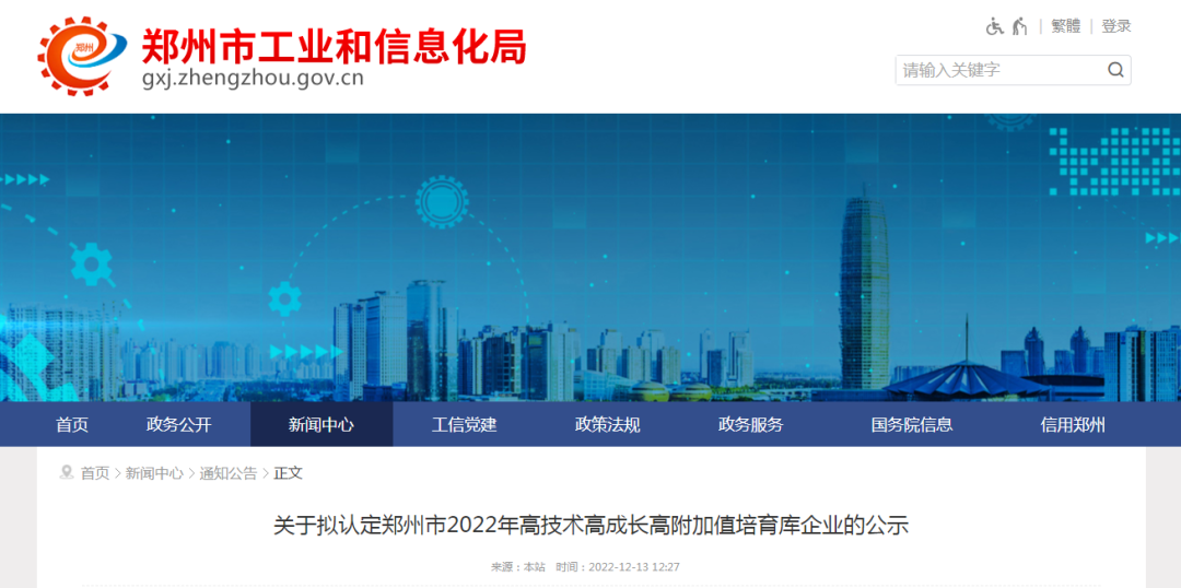 根據《鄭州市人民政府辦公廳關于支持高技術高成長高附加值企業高質量發展的實施意見》(鄭政辦〔2021〕59號)精神,《鄭州市工業和信息化局 鄭州市科技局 鄭州市發展改革委員會關于開展高技術高成長高附加值企業培育庫申報工作的通知》(鄭工信運行〔2022〕11號)要求,經企業自愿申報、區縣(市)初審推薦、專家組評審等程序,現將2022年高技術高成長高附加值培育庫擬認定的1192家企業予以公示。如有異議,請于公示期內以書面形式實名向鄭州市工信局反映。