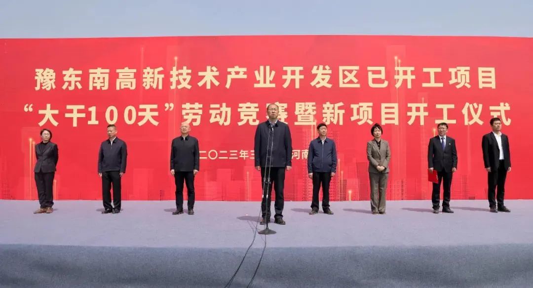 此次市委書記蔡松濤出席儀式,宣布勞動競賽啟動、新項目開工。市政協主席、豫東南高新區黨工委書記、管委會主任孫同占出席儀式并講話。市委常委、副市長秦保建主持儀式。海天咨詢董事長韓江濤、全國發展平臺第7項目分部副總經理劉世賢作為參建單位代表受邀參加。此外有關部門還有各參建單位代表等40余人列席參加儀式。
