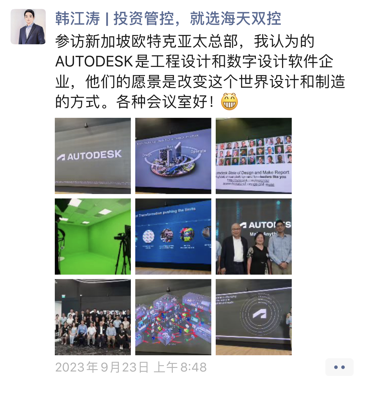 2023年9月21日—27日,海天咨詢董事長韓江濤隨同國家教學名師、中國工程咨詢學術泰斗與行業領軍人物尹貽林教授帶隊的中國重大工程技術投資管控智庫代表團,前往馬來西亞參加2023年度亞太工料測量師協會(PAQS)大會,并在會議期間參訪AUTODEK亞太總部、新加坡盛裕集團、裕廊創新區、新加坡南洋理工大學、馬來亞大學!